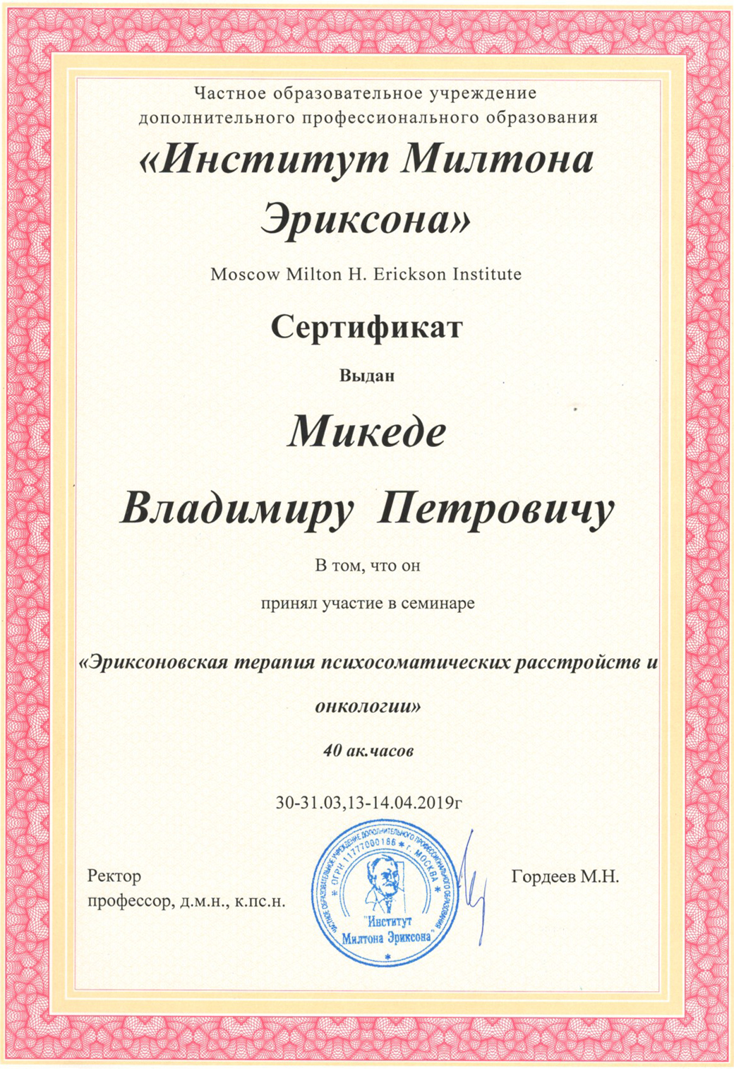 Я Гусакова Ирина, 58 лет психолог, закончила курс у Владимира Микеды, цель прихода была, во первых, разобраться со своим здоровьем, во вторых, с помощью метода помогать людям, очень понравилась организация курса, возможность в удобное для себя время изучать материал, абсолютная доступность по всем вопросам, доброжелательный настрой и открытость группы и самого Владимира, очень помогал чат, технически не было трудностей с выходом в скайп и на вебинары. Выполняя упражнение по выстраиванию линии жизни,мне удалось "увидеть" и понять свой биологический ум, как циклично в моей жизни происходили события связанные с болезнями, за время учебы случился приступ сильнейшего головокружения, и мне удалось отработать проблему в технике оэт.и справиться с проблемой, и в практике своей так же отработала подобный симптом дважды. После курса пришла энергия и ушла излишняя тревога за здоровье.Огромное спасибо Владимиру, группе и кураторам .