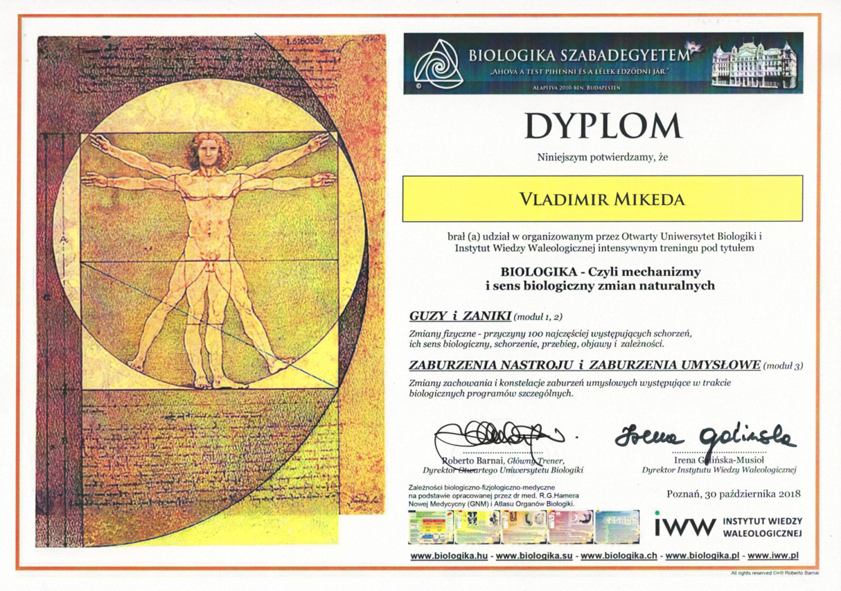 Но сюда я пришла только с одной целью: изучить Германскую медицину. И освоить, как можно исцелиться с помощью этой методики. Когда я задумывалась о том, чтобы найти где есть такие курсы, где такие есть программы, два года я практически искала Владимира Микеду, можно сказать, и его курс Биопсихосоматика. Потому что обучиться не получается по книгам, по статьям, по маленьким блокам, что есть в интернете.